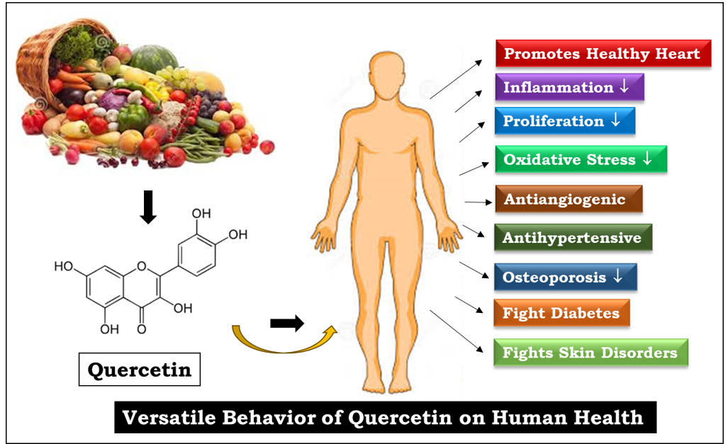The thorough analysis of quercetin concludes by highlighting its extraordinary potential to treat various health issues. Quercetin is a multifunctional agent that promotes overall well-being due to its ability to fight cancer, osteoporosis, and cardiovascular diseases. It also has promising anti-diabetic and anti-obesity properties. Our review underlines the significance of quercetin as a promising therapeutic avenue for various health conditions by elucidating its diverse mechanisms of action.